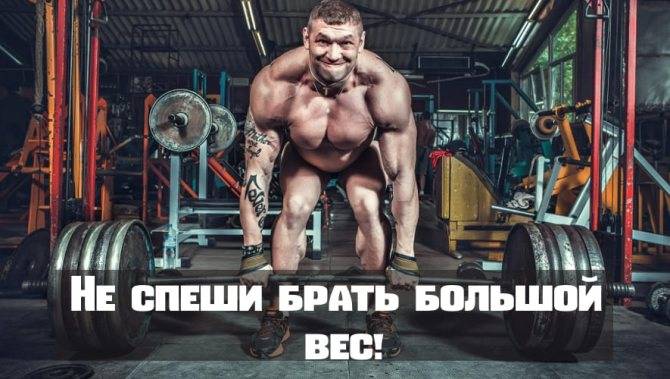 - Рабочий вес. Данное упражнение не требует использования большого рабочего веса. Более того – чем больше блинов вы навесите на штангу, тем опаснее и тяжелее будет выполнять тягу, и тем меньше эффективности и пользы она принесет. В идеале следует выбирать вес, который вы сможете качественно и правильно (в плане техники) поднять не менее 7 раз.