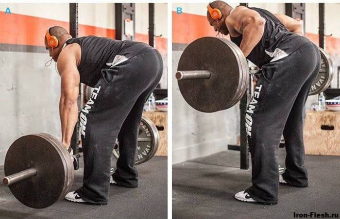 — Главное в тяге в наклоне — это ощущать тренируемые мышцы. Без корректной нейромышечной связи тяга в наклоне работать не будет. Стало быть, нужно, во-первых, использовать визуализацию, а во-вторых, не гнаться за весом, увеличивая количество подходов и повторений.