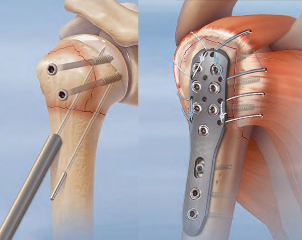 - металлостеосинтез (установка пластины и фиксация ее шурупами);