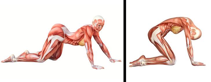 «Кошка» отлично подходит для разогрева позвоночника, она также влияет на гибкость спины, шеи и плеч.