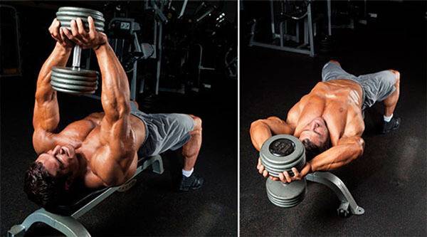 - Разгибание плеча: когда вы опускаете руку из положения за головой, словно выполняете пуловер