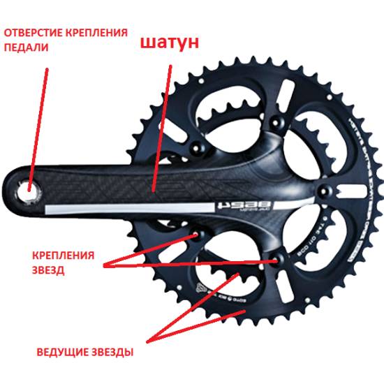 Шатун — это металлический рычаг с большой и малой головками, который передает усилие с педалей на вал каретки. Существует несколько типов шатунов для велосипедов: