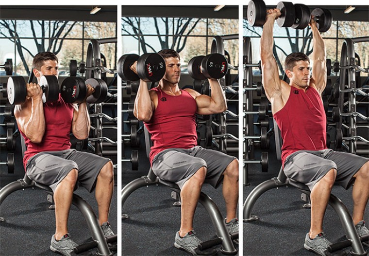- Жим Арнольда: 3-4 подхода по 8-12 повторений