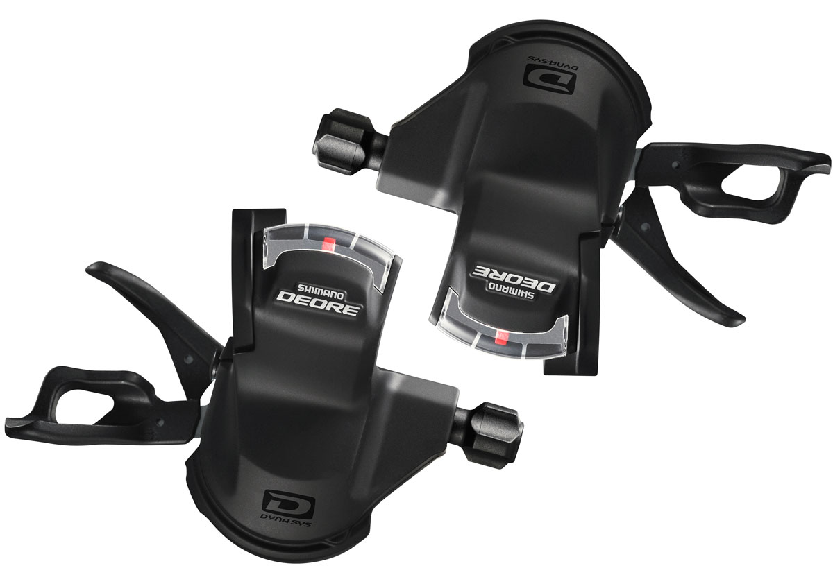 Шифтер — это важный компонент трансмиссии, который управляет переключением скоростей. Пластиковые манетки Shimano Deore совместимы с 9–10 звездами сзади и 2–3 звездами спереди. Рычаг с системой 2-Way-Release активируется в двух направлениях, легко отзывается на нажатие, дает возможность гонщику быстро менять стиль вождения. В эргономичных моделях рычаг можно нажимать указательным или большим пальцем. За ход ручки передача повышается на 3 звезды или сбрасывается на 1. Для размещения на руле применяется система I-Spec, которая сочетает крепление рычагов тормозов и манеток, удобно регулируется под потребности владельца. Выпускаются модификации шифтеров Shimano без индикатора с креплением на хомут.