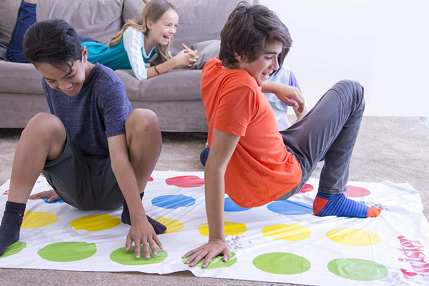 Игра «Твистер» представляет собой поле с цветными кругами на белом фоне и является одной из самых популярных. Размер игрового поля — 1,6 × 1,4 метра. В игре нет карт и кубиков; участники делают ходы, вращая рулетку. В ней могут участвовать от 2 до 4 игроков, каждый занимает позицию, указанную на рулетке.