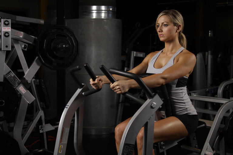 Чтобы получить максимум эффекта, надо правильно выполнять горизонтальную тягу в рычажном тренажере: