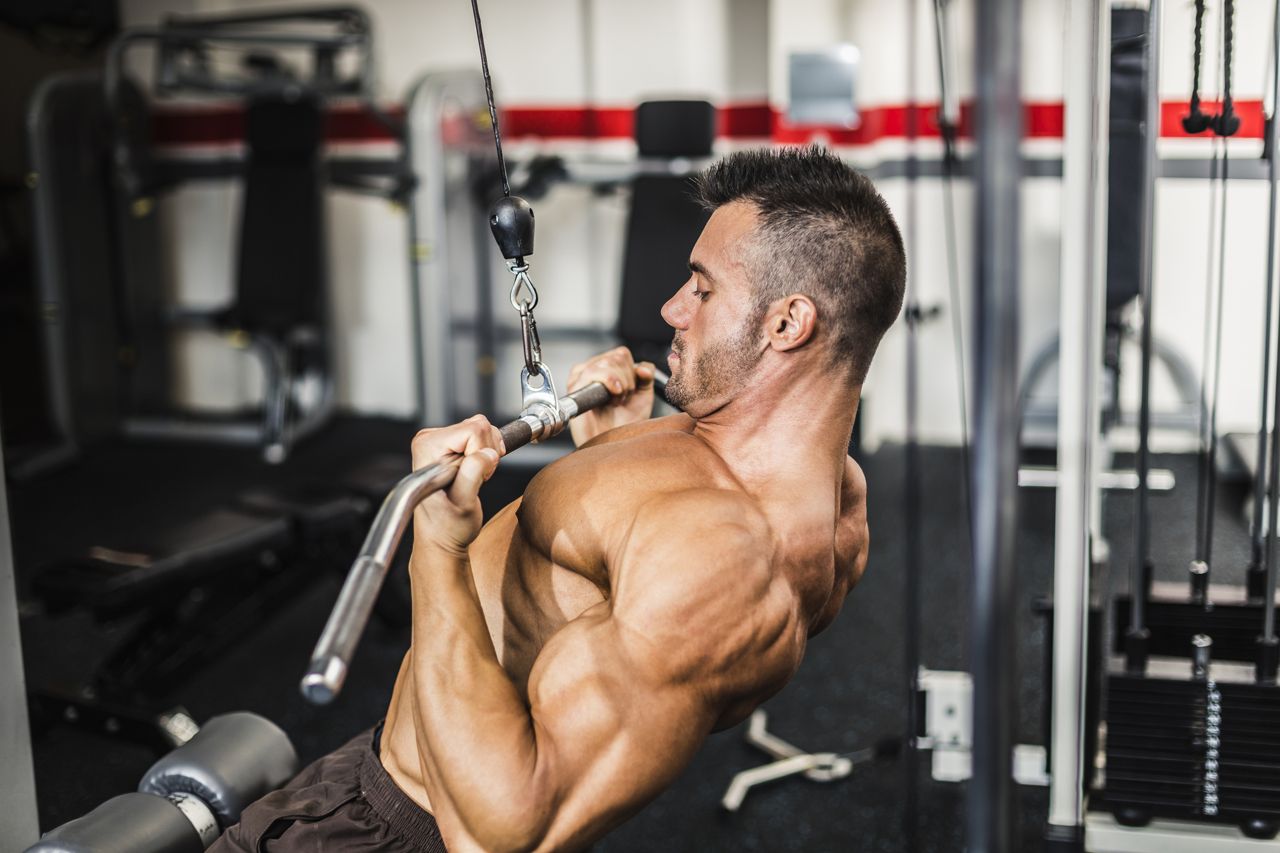 При выполнении вертикальной тяги на тренажере укрепляются, становятся рельефнее такие мышцы: