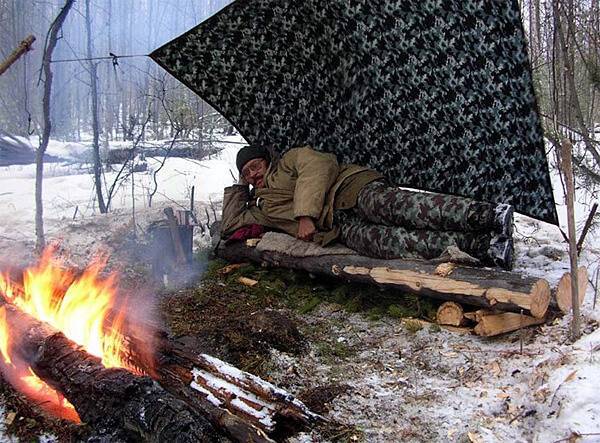 Бивуак в зимней тайге без использования палатки, который позволяет переночевать без риска для жизни и здоровья.