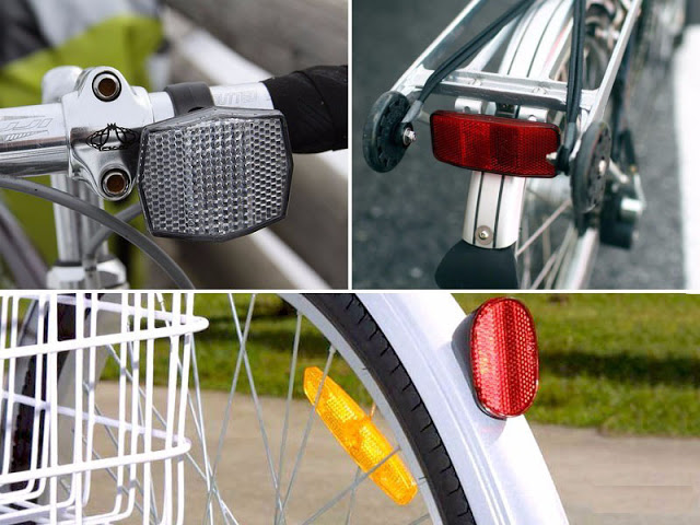 Фары и световозвращатели. Если велосипед используется в темное время суток или в условиях недостаточной видимости, на велосипеде должен быть установлен спереди фонарь белого цвета, а сзади — фонарь или световозвращатель (катафота) красного цвета.