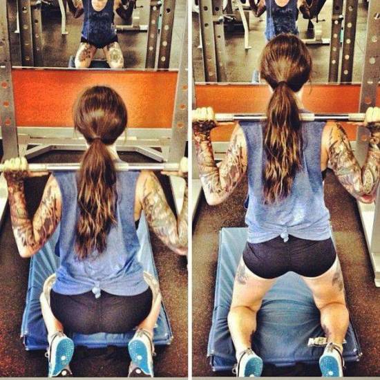 Большинство девушек с помощью приседаний в Смите рассчитывают накачать ягодицы. В этом случае при выполнении понадобится вынести ноги вперед, благодаря чему вектор нагрузки будет направлен именно на ягодичные мышцы.