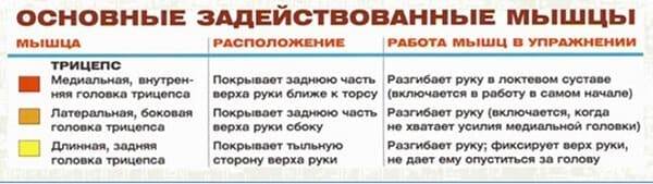 Разгибание рук с гантелями из-за головы: мышцы, которые работают