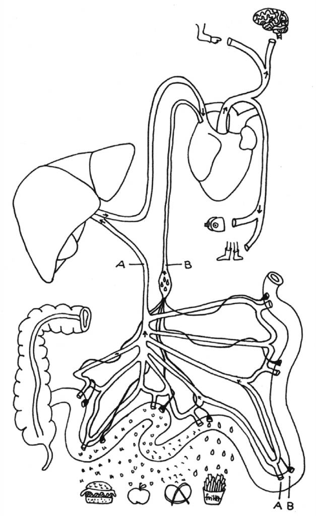 Также нужно знать, что жиры не поступают напрямую в кровь: в крупных сосудах они остались бы плавать на поверхности, потому что не растворяются в воде, а в мелких привели бы к закупорке. Поэтому молекулы жира выводятся из кишечника лимфатической системой, откуда они поступают напрямую в сердце.