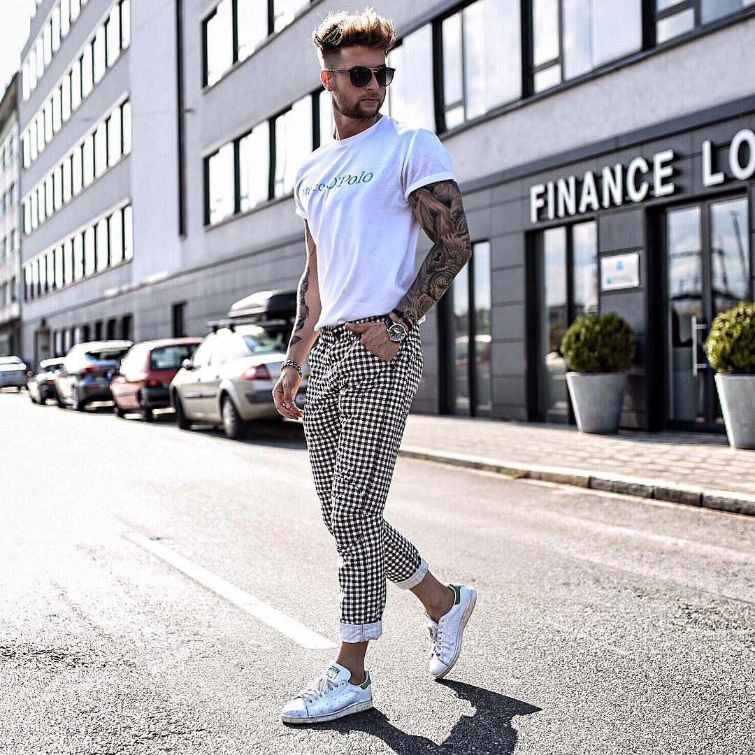 Мужчины часто задаются вопросом, как носить кроссовки. Им можно позволить практически все. Стильный комплект может состоять из базовой футболки, джинсов и пиджака, дополненных темно-синими кроссовками. Яркие модели подойдут смелым личностям, предпочитающим сочетать их с монохромными образами в серых или коричневых тонах. Современные денди выбирают элегантную классику: стильная сорочка, темные брюки и светлые кроссовки, завершающим штрихом станет горчичный тренч.