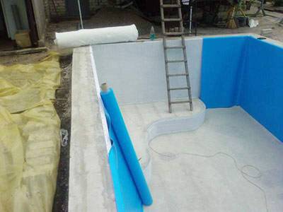 При таком способе возведения чаши, не менее легко и быстро осуществляются и все последующие стадии строительства бассейна. Так, облицовка стен и дна чаши не требует дополнительных работ и часов, связанных с выравниванием, штукатуркой и обработкой специальными гидроизоляционными составами, так как на абсолютно гладкие пластиковые поверхности наносится пластичная, экономичная и гигиеничная ПВХ-пленка, являющаяся одновременно и облицовочным, и гидроизоляционным покрытием.