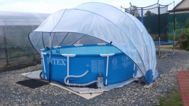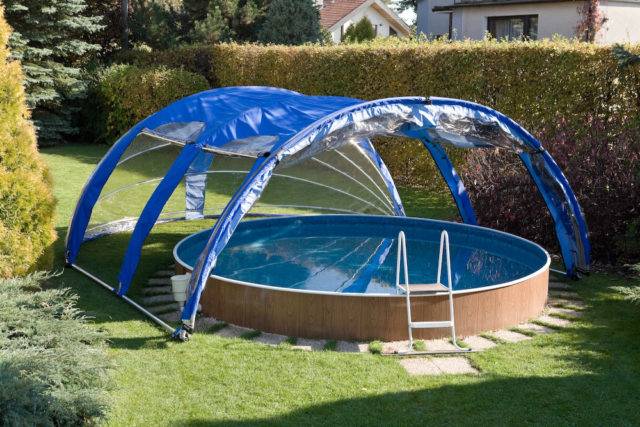 Таким образом, можно не только закрыть бассейн на улице, но и украсить собственный участок.