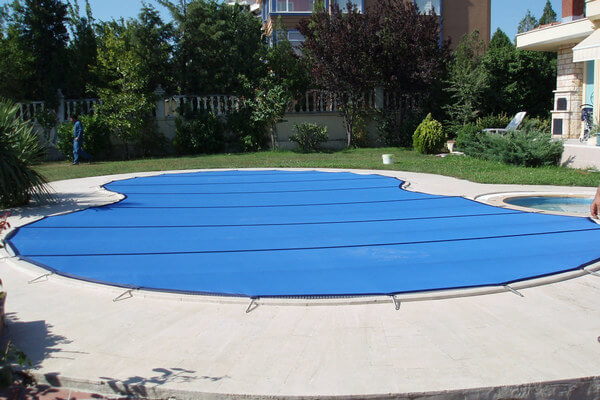 Специальные материалы предохраняют бассейн от мусора, помогают сохранить воду теплой, ограничить её испарение. Это может быть пленка, специальный теплоизолирующий материал, раздвижные конструкции роллетного типа.