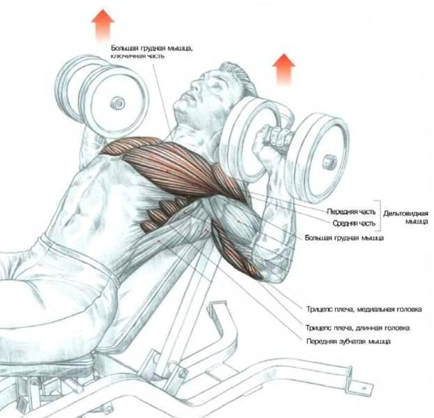 Жим гантелей на наклонной скамье: техника выполнения