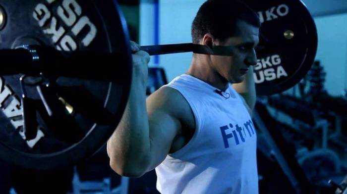 Выжимайте штангу строго над головой, а не сзади себя, не наклоняйтесь сильно вперед